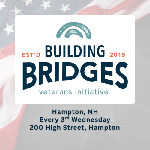 The Building Bridges Veterans initiative is an expanding movement whose mission is to address veteran social isolation, depression, Post-Traumatic Stress and suicide risk that so often accompany military service. Seeking ways to genuinely thank veterans for their service, Building Bridges creates veteran communities around a bi-monthly or monthly meal, resulting in an organic development of peer support and mutual healing. They meet at noon every 3rd Wednesday of the month at Hobbs House, 200 High Street, Hampton, NH 03842.
